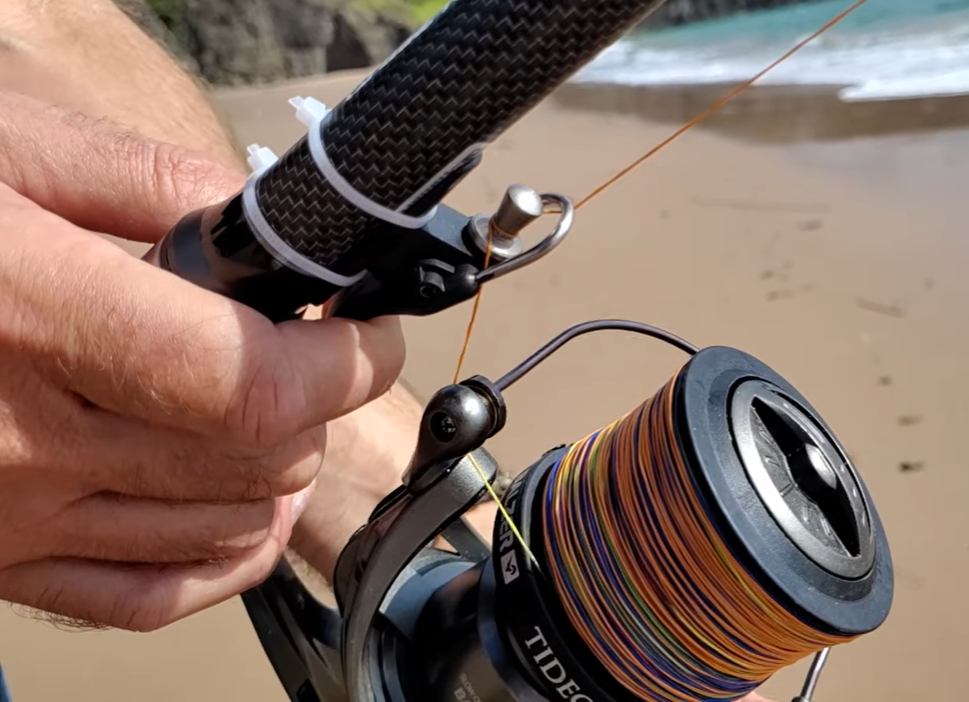• Attaches to the rod: It's mounted near the reel, often with cable ties, tape, or permanently wrapped. (You may want to mount slightly twisted away from reel for person setup comfort)