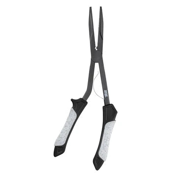 Nomad Design Hydra-X Stainless Long Reach Pliers feature an extended 11" jaw design for safe, deep hook removal in tight situations. Built from marine-grade stainless steel with a PTFE Teflon-coated finish, these pliers resist saltwater corrosion and maintain smooth operation in harsh conditions. The spring-loaded mechanism enables quick, one-handed deployment, while MAX GRIP+ ergonomic handles deliver comfort during extended use. A convenient lanyard hole keeps your pliers secure and within reach on deck. Engineered for serious saltwater anglers who demand reliability and durability.